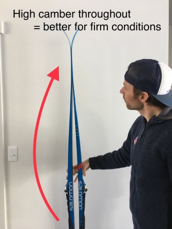 The type of camber in a ski can also affect how well the ski will glide in certain conditions. Take a pair of skis and ever so slightly press them together. Skis that bow out a lot (have a high camber throughout the entire ski) will be better suited for firm tracks.
