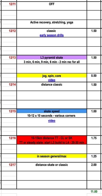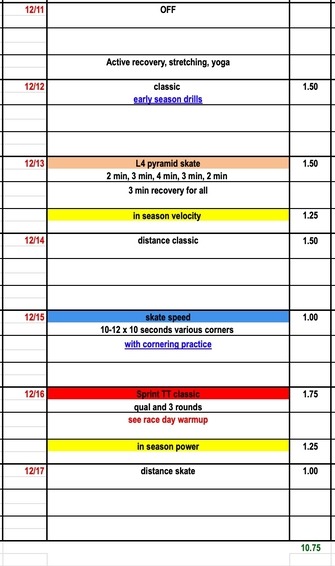 This week the NTS training plans will focus on intensity and racing. While the elite plan kicks off the winter race season (Check out Race Prep 101 and Race Day Warmup for new ideas) the junior and master plans recommend interval sessions. Do you follow the elite plan but have no competitions this week? We recommend following the junior plan while adding 1-2 hours of easy distance training to the week. The masters plan has a new In Season General/Max Strength plan. Remember if you are new to snow it always makes sense to focus on easy skiing and drills the first few days. Check out a new video on early season cornering by Hannah Rudd, and some drill recommendations for early season classic drills.