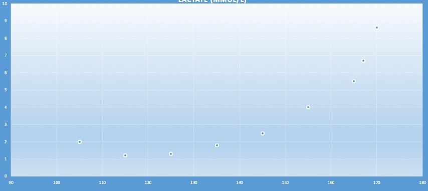 Just by graphing out your heart rate (X axis) and lactate (Y axis) you can get an accurate estimation of your training zones in this ski technique.