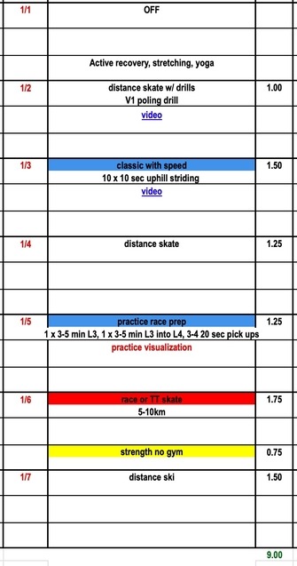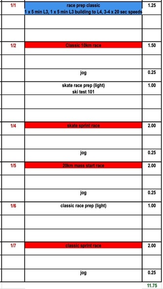 Race Prep 101 for details on workout suggestions. The Elite plan follows an intense racing schedule (if you are not racing as much as the plan indicates stick to two intensity session this week and replace the other days with easy distance sessions). Since we are entering the heart of the race season we re-post some helpful videos on ski testing. Check out our new