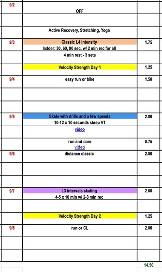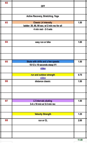 Welcome to September! The dog days of summer are behind us which means skiers will transition into more high intensity training. During September our training weeks will often combine one L3 interval session and one L4 interval session. All NTS plans will enter a 3-week training block: Med, Hard, Volume. This is a change from our previous 3 week cycle to a 4 week recovery cycle.