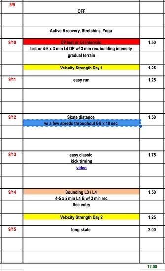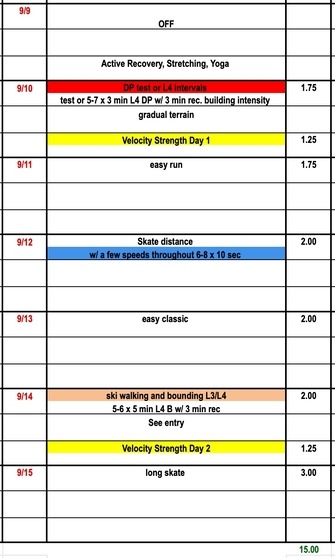 This week we test our fitness with some higher intensity sessions. Re-try our NTS double pole test protocol OR replace this session with some 3-minute L4 intervals. How do you fuel for high intensity sessions and races? We post a study on caffeine use and performance. While snow might still be a few months away we can still make great technique adjustments on rollerskis to train proper mechanics. We share a new video on classic kick timing and useful drills. As our intensity recommendations increase remember to listen to your body to mitigate injury and fatigue. Kurt Jepson shares some ideas in