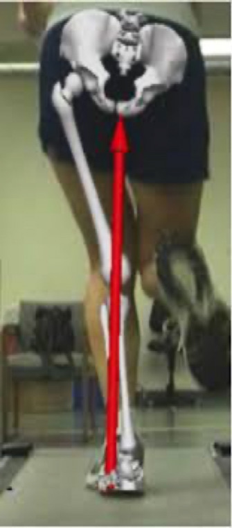 Hip abductor and rotator weakness affecting foot/ankle position, below: