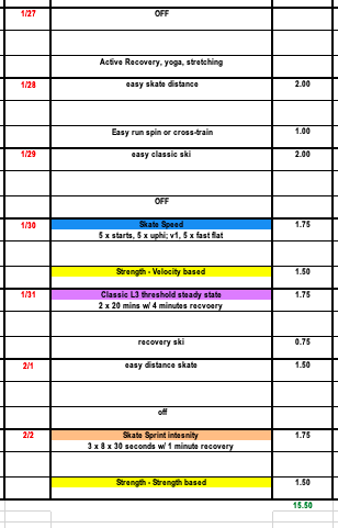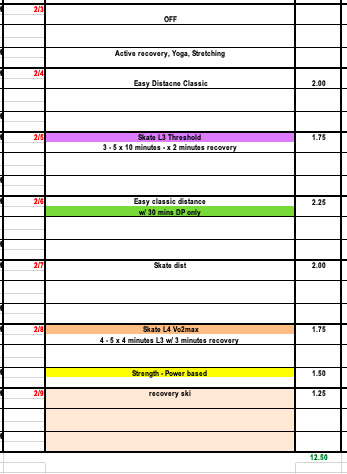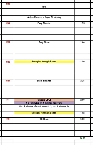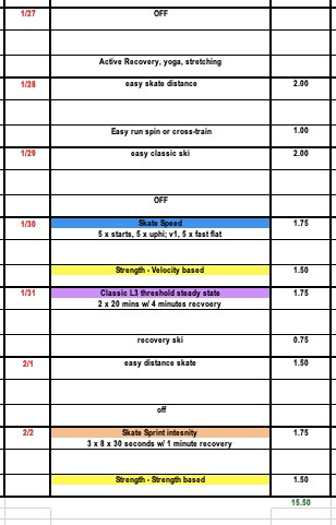 Our Birkie prep plan and the general NTS plan are following a slightly different periodization but will now sync together for two fairly similar training weeks.