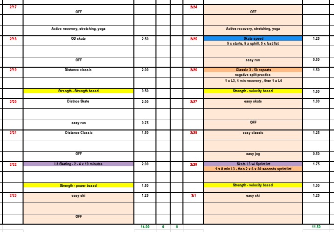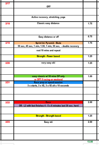 I encourage skiers to listen to their bodies this week and keep that saying in mind. Think about what you personally need to fine tune, whether that is speed, a specific technique, but also realize that striving for big strength and fitness gains in just 6 days in unlikely.