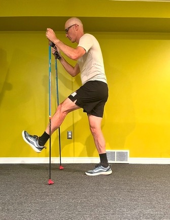 Use poles or a stationary object for balance support (I’m a huge advocate of balance exercises, and we could make this a balance exercise, but I think it needs to be one or the other and not both).