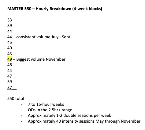 During the summer prep period these 3 plans will follow a similar cycle of easy, medium, hard weeks. As we get closer to the winter these plans will deviate more from one another depending on what the racing focus is. Below each plan is outlined to show its monthly progression. We often refer to them as months of the training year but they are actually periods (or simply 4 week blocks that sometimes overlap different months)