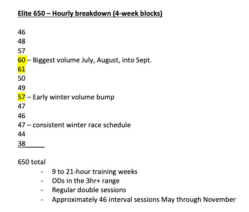 Designed for older juniors (17 - 20) or any elite level skiing competitor preparing for a full winter of racing. More periodization from month to month with higher volume and more intensity .