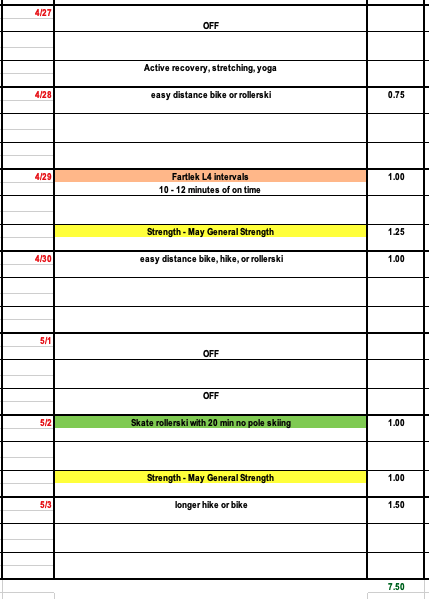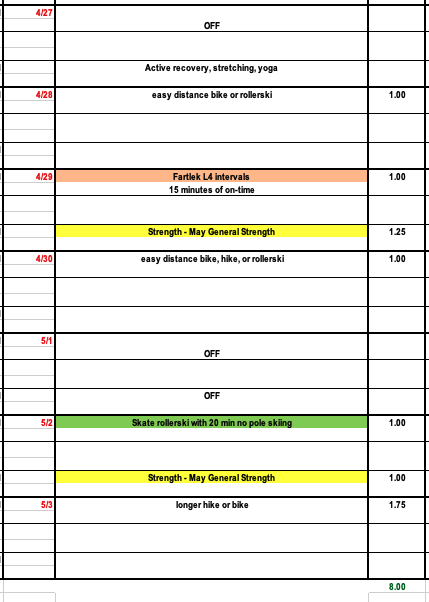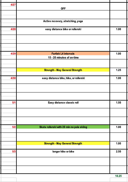 A lot of people ask us what determines the first training week of the year. Most cross-country skiers keep track of their training on a yearly basis starting May 1st, which means whatever week the 1st of May falls in will be the official start of the training year.