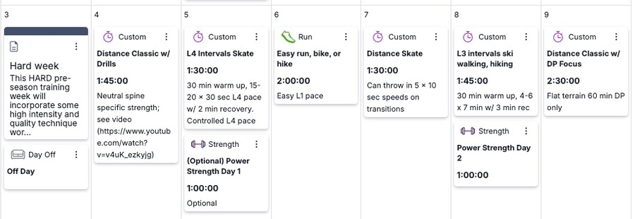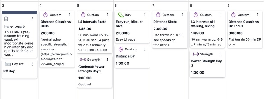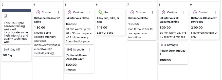 This HARD pre-season training week will incorporate some high intensity and quality technique work. Remember, our ultimate goal is to move faster on skis! Check out this week's short L4 interval session designed to train fast and relaxed V2 alternate and V2 technique. We also look at kick double pole timing and ways to develop more power in double pole technique. We have talked a lot about mental training for athletes recently, but do coaches need mental training as well? Ryan Sederquist explains in his article, plus we start new power velocity strength plans!