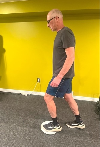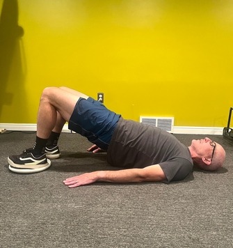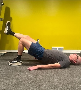 You’ll need to be able to slide a foot on the floor. You can accomplish this with a slider (specifically for exercise or a furniture mover from Home Depot), a frisbee, or a towel on hardwood or tile. Start on your back with knees bent and the slider/frisbee/towel under one foot. Do a bridge by lifting your butt up off the floor. Raise the non-slider/frisbee/towel foot off of the floor. Keeping your butt off the floor for as long as possible, slowly slide the other foot out. When you reach your max tolerance/ability, drop your butt down and reset the starting position. Look to do 3 sets of 3-5x initially and build to 10x. Keep in mind that eccentric exercises tend to create more Delayed Onset Muscle Soreness (DOMS) so don’t be surprised if it hits you 24-48 hours later.