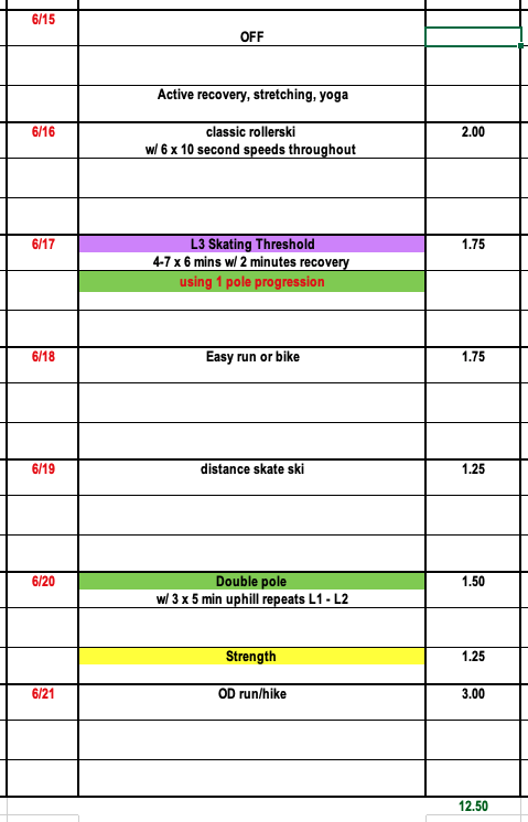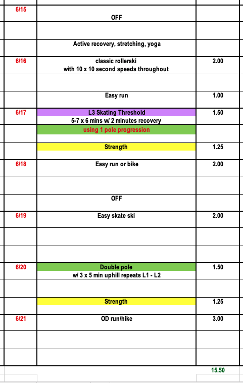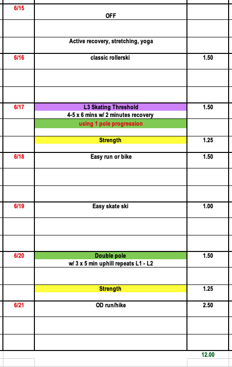 - Check out the June L3 interval recommendation. This week we use some one pole skating during the threshold session