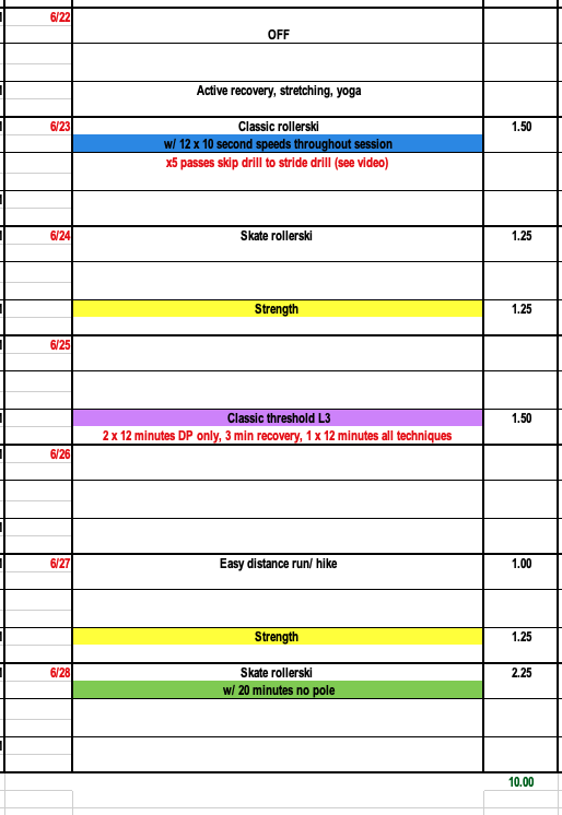 This week we continue with steady summer training but will reduce the training load slightly to allow for some recovery following last week's higher volume. Especially during the summer months we can continue to train well during easy weeks but should decrease the load in all aspects of training including total training hours and intensity.