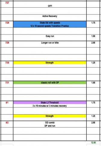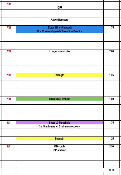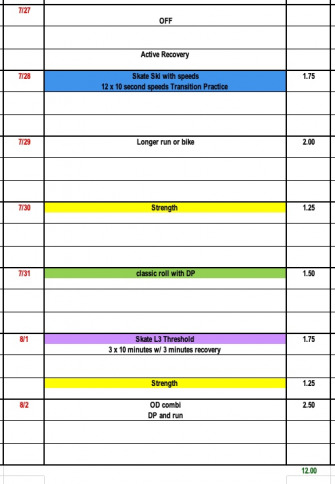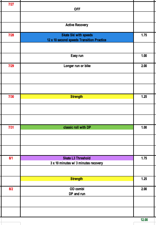 The next two weeks will focus on high volume and big training hours. Weeks 14 and 15 will be some of our biggest volume weeks of the summer with a focus on lots of easy distance L1 training and over-distance workouts.