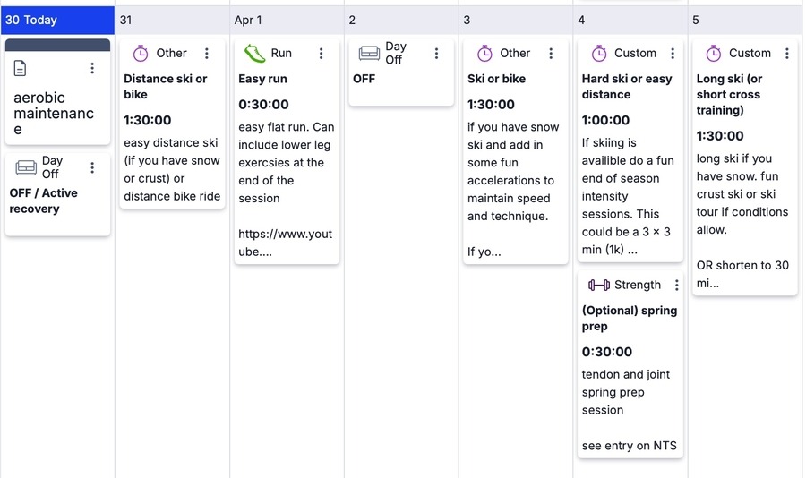 As our winter season wraps up, we turn our attention to recovery and maintenance. How much rest do you need this spring before returning to base training? We post our guidelines and discuss the topic on this week's Race Ready Podcast. Before your race days are forgotten make sure to spend some time reflecting on your process. Scott Lacy shares his race season review process. We also post a short, simple, at-home spring prep session to get your legs ready for running and hiking. If you are ready to get back into the gym, check out our spring gym session to prep our joints and tendons for summer training.