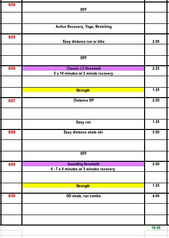 After a solid week of intensity it's time to keep the pedal down and settle into one of our last 'volume bumps' of late summer. This week we will focus on more easy distance training and over distance sessions. Our interval sessions will prioritize threshold on-time and efficiency. (Junior and master plans have one L3 session, elite has two)