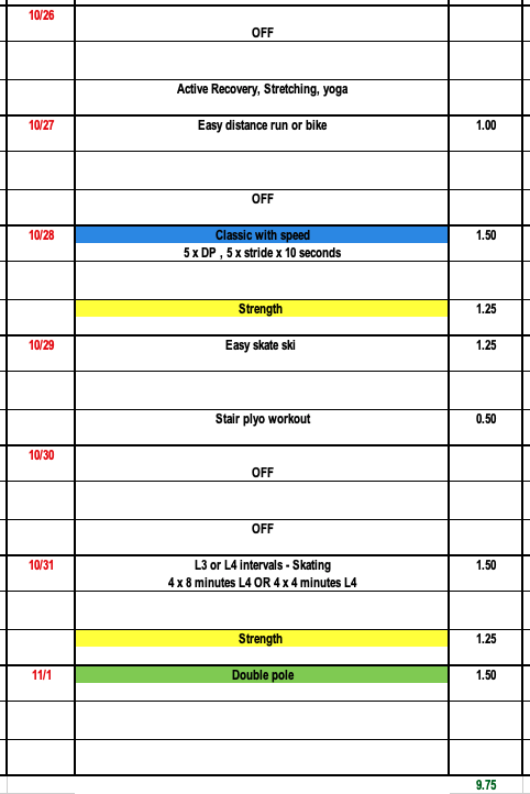 This week we give members the option of L3 or L4 intervals depending on fatigue level and what individuals feel like they need to work on. Sarah Willis, PhD helps guide us with her entry about the importance of training both low and high intensities. Junior and Elite plans recommend a power based stair plyometric workout and we continue with one more week of max strength before switching over to a power phase.