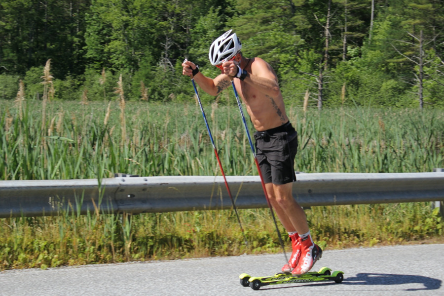 I was first introduced to this session while training in Lillehammer with some marathon ski-classics skiers. They found this workout very valuable for working on a higher paced double pole while at the same time keeping the heart rate around threshold for sustained periods of time. Essentially this is a steady state interval session split up into 40 second bursts to help athletes focus on quality movement and power while at the same time reap the benefits of sustained interval time.