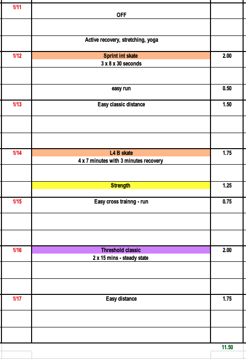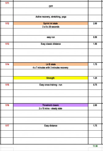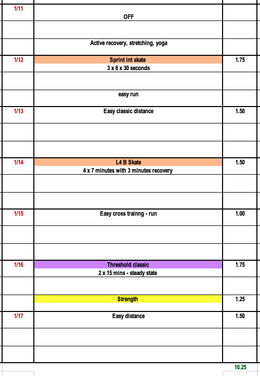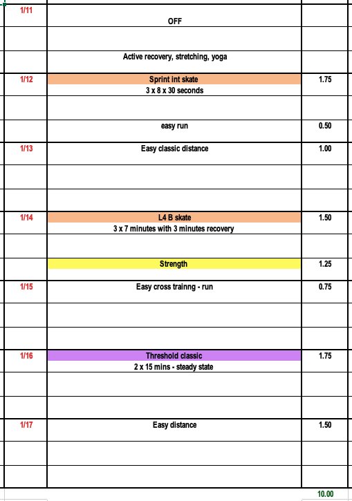 Whether racing in a true competition season or not, January is the time when skiers should refine their fitness through high intensity sessions. We know a basic principle of super-compensation and periodization is to not mix volume and intensity.