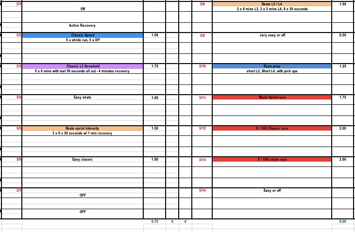 Juniors! It's your time to shine. Throughout the country we have some regional junior championships coming up. The Midwestern Championships are this weekend (March 5-7) and the Western Championships are next weekend (March 11 - 13). In preparation we already started tapering training last week. This week we split the junior plan into a Midwestern recommendation that will focus on competitions this weekend and a Western recommendation that will continue to taper and sharpen for an additional 5 days.