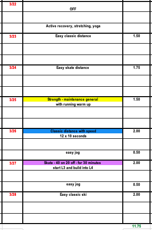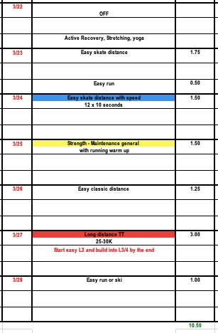 The Elite plan focuses on some recovery early in the week and will incorporate a long hard effort next week. Look for new spring strength plans and spring training ideas next week!