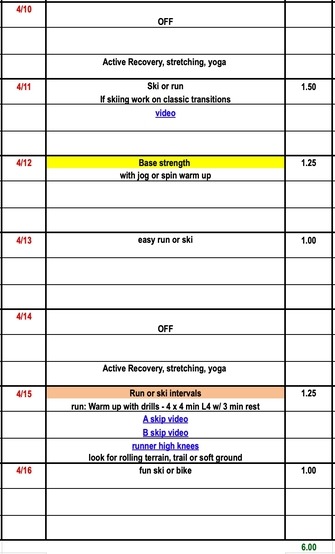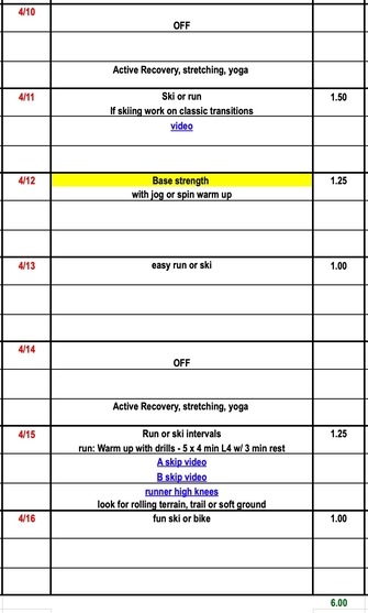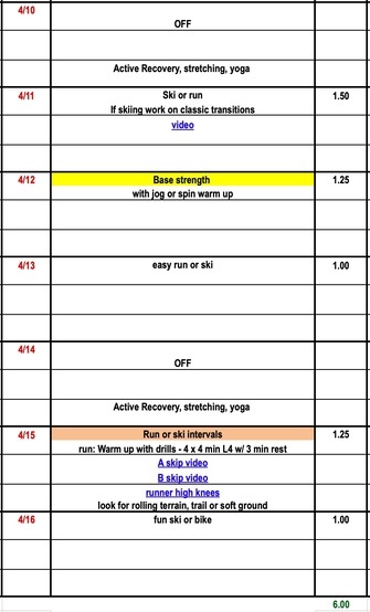 What should training look like in April? How much time off do skiers need? Should we do intervals?