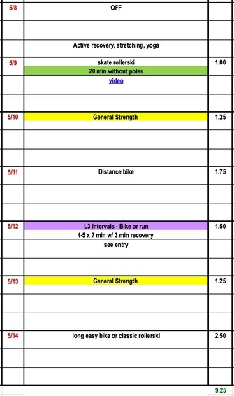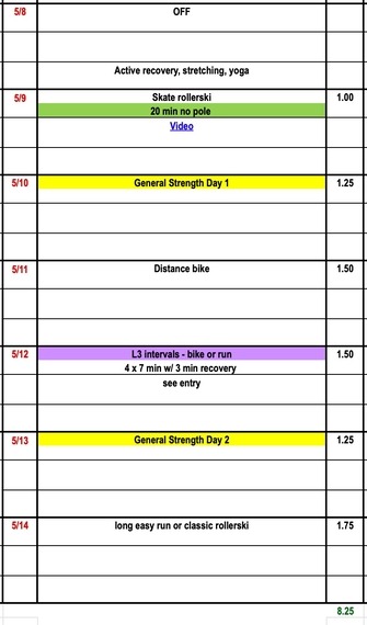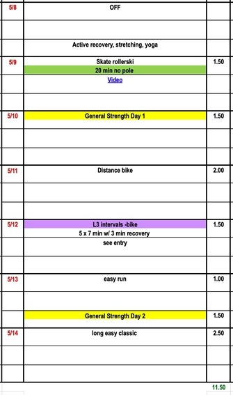 This medium week is designed to help our bodies adjust to the daily load of a new training year. In general, we try to focus on single session days during the first few weeks of the training year to make sure athletes absorb each workout. Still getting used to rollerskis? We recommend some no pole skate skiing and cross-training L3 intervals this week. We continue our series on training theory with an informative presentation by Dr. Stephen Seiler and Kurt Jepson shares his new research on muscle cramping.